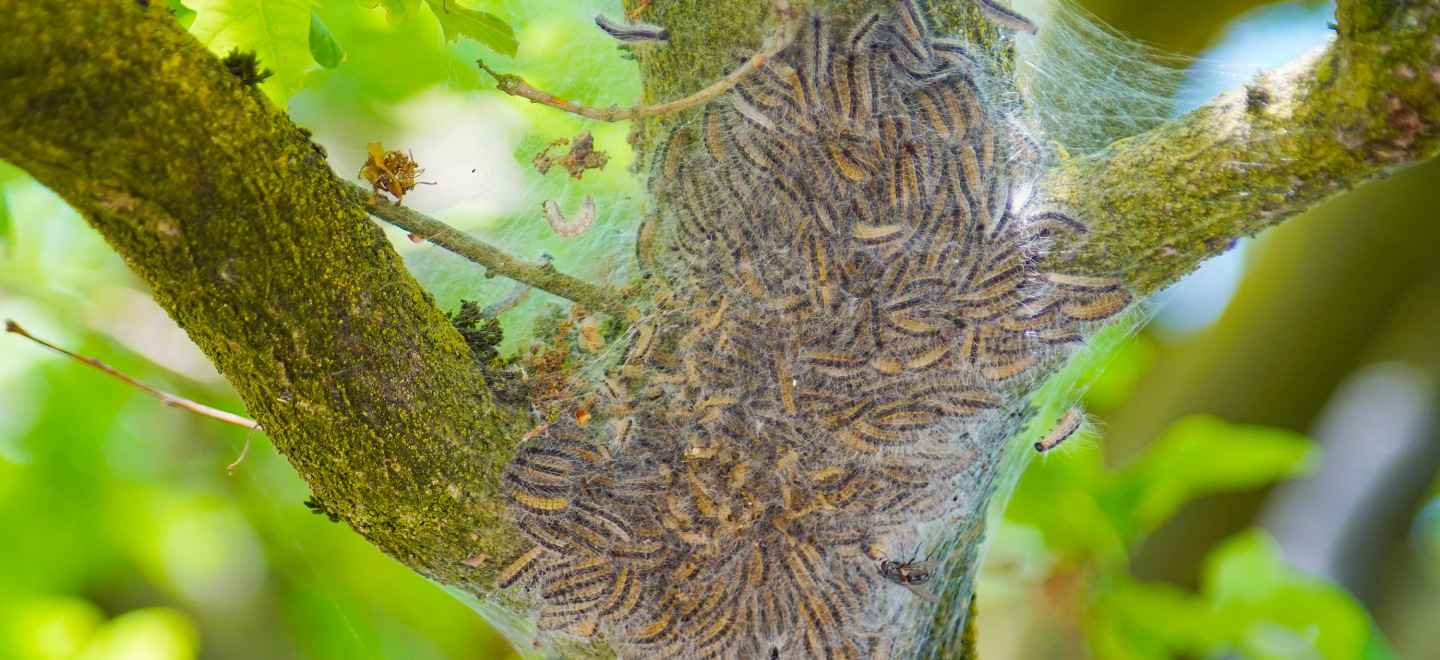 • Identifier un nid : les nids de chenilles processionnaires se trouvent principalement en hauteur dans les arbres, ces nids ressemblent à des toiles d’araignées très denses avec des fils de soie très fins.